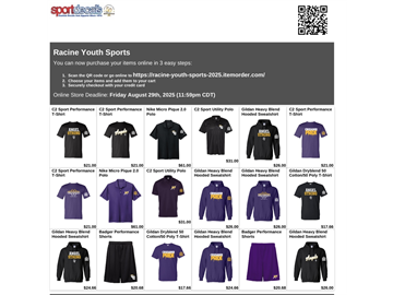 Our team spirit wear store is currently open online. The store will be open until August 29th at 11:59pm. Once the store closes, all orders will go into production and are expected to be delivered the week of September 8th. You also have the option to customize your items by adding names and numbers to them.